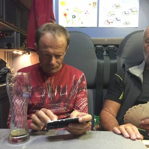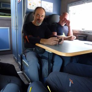 Zadnji je Erzo po drugem delu, ko smo že vsi v kamperju.