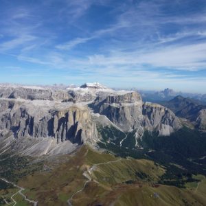In končno začnem uživati do konca (smo skoraj sami). Vozim blizu sten (kjer sem včasih tudi kaj splezal…) in mi je kar tesno pri srcu. Vanja mi pove, kje naj nabiram in takoj sem nad zgornjim platojem. Zapeljemo naprej čez Val Lasties na Sass Pordoi in v Z steni nabiramo. Potem pa naprej čez Passo Pordoi do Belvedera, kjer z Faacom že precej izgubiva. Igor je ostal zadaj in bolj nabira.