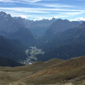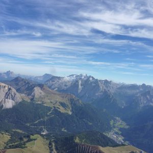 Za Belvederom ne dela nič, zato se Vanja zapelje naprej proti Marmoladi, jaz pa le dobim nekaj dviganja in veliko dolinca in se obrnem proti Canazei-u in pristanku. Včasih gre zelo počasi naprej, vendar brez problemov pristanem pri Megu na travniku.