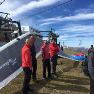 Na položni izravnavi Vanja in Igor najprej pomagata razplesti zapletenega soseda, potem pa pomagata postaviti še meni. Potegnem in stopim v zrak in se začnem izogibati ostalim (imam občutek, da se drugi meni ne in kot da nihče ne upošteva pravil). Počasi naberem v zgornji del gužve, kjer je malo redkeje. Tudi Faaca in Igor sta v zraku. Faaca kmalu izjavi, da mu je dovolj te gužve in se odpelje nazaj proti travnikom pod Sassolungom. Jaz sem že skoraj na tem, da se odpeljem ven in v dolino pristati, ko Vanja javi, da je tam skoraj sam in da lepo dela.