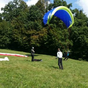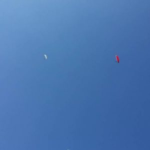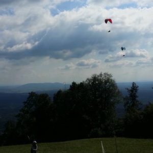 Na štartu piha idealno, ko začnemo postavljati začne crkovati. Prvi poštarta Širca, potem jaz, Bojan Dolenc in Rajko Sila. Vsi smo nizko in se borimo, vsi trije kraševci so že na tleh, tudi jaz že skoraj (na 650m), kjer ni več vetra, precej je pokrito, ko začnem malo povrtavati malo stran od grebena in ko ga spet priključim, greben ponovno začne delat in sem nad njim. Pa spet začne crkovati in se odpeljem proti črnem oblaku malo zunaj – tam sem pa ekspresno na 1900. Predhodno zaključim vrtenje, ker imam na čeladi že kapljice, črnina je pa vedno večja in me že malo stiska. Po robu se peljem ven, še kar v dviganju, potem se pa usmerim proti Postojni, vedno bolj v veter. Gledam štart Citabrie s postojnskega letališča, z vleko DG Elana z registracijo PJ ali P9, nisem dobro videl. Izgleda sta tudi ona dva videla mene, saj se DG usmeril proti meni, ko sem krožil nad ravnino med Otokom in Zagonom. Žal on ni dobil nič, ali je slabo preiskal, oziroma ni bil dovolj vztrajen, nato je pa nadaljeval proti ravbarkomandi, jaz pa, ko je nehalo dvigat in me je odneslo že na pol poti, do Nanosa. Sprva z lepo hitrostjo in majhnim propadanjem (60+ km/h -1m/s) sem mislil, da bo zneslo, da ga poklopim vsaj na 1000m, ampak sem bil nad Ubeljskem že zelo nizek, kot že trikrat prej, ko sem tam scuril, na okrog 600-700m. Malo taktiziram, kaj naj, scuril ne bi še rad, skbi me sicer, koliko je vetra pri anteni. Pa pokličem postajo Kovk: 4-9m/s SV. Veternica se pa sploh ne vrti ?! Nič, zdaj pa vse od sebe, peglam greben, počaaaasi gre gor, nato pa na 900 metrih, kot da bi zajahal raketo, sem bil nad grebenom. Na dinamiki do 1300m, tam pa še malo iščem. če bi dobil kaj boljšega, da bi se čez vrgel z vsaj 1600. No, z malo manj je šlo kot po toboganu in v Podragi sem tudi mislil, da je že vsega konec, ko se propadanje -4 m/s končno ustavi, začnem vrteti nulo in analiziram, kam za vraga tukaj piha, ker me ne odnaša nikamor! Izgleda kot neka konvergenca med dolinskim vetrom Z in burjo. Dviganje – nulo – še malo raziskujem, brez nekega cilja, dokler me ne začne spet odnašati SV, dviganje je pa vedno močneje, a še vedno počasno. Po 40 minutah ringenšpila sem na 1800 pri Štanjelu, baz nikjer več (pa tudi tukaj sem vrtel na suho), razen na klasičnem grebenu Čaven – Lijak. Odglajdam v Renče, namesto proti morju (do Trstelja je bil SV, potem pa V), zaradi lažje logistike.