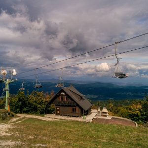 14.15 Železniška: Uki, Erzo in Zoran. V Logatcu snamejo še Mega, jaz vskočim na Kalcah, skupaj z zemeljsko podporo – Ano in kopilotko Misty. Zoran šofira z LC-jem, Erzo spredaj navigira “old school” po karti. Zadaj pa speštani: Uky, Mega, Ana, Misty in jaz. Čez Hrušico na Javornik.