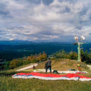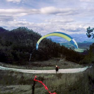 Na štartu skoraj nič vetra, drevesa se zibajo (smo v rotorju – SZ). Postavimo nad cesto in malo čakamo zaradi neenakomernega in mešajočega vetra.