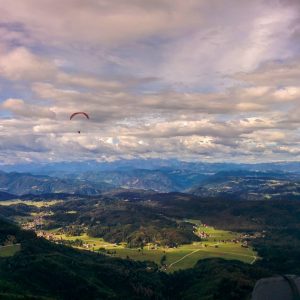 Zoranu je (razen začetnega rukerja iz poseke naprej ven) vse lepo laminarno, čeprav močno. V levo proti Črnemu Vrhu ga najprej dviguje čez 1300 (pa si ne upa še bolj nabirati zaradi kapljic in črnih baz naokoli…), potem mu začne spuščati.
