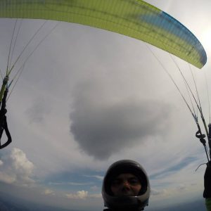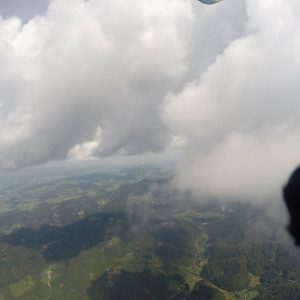 Janez nekaj časa modruje na štartu, čaka da koprena izgine. Mene tudi močno scat, zato toplandam, odtočim, in po slabe pol ure se popolnoma zjasni in greva ponovno v luft.