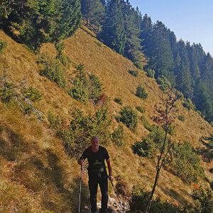 Malo tavava po širnih gozdovih (napačno vdenem LCja), preden prideva v Podkraj in od zadaj na Kovk pod nizkimi bazami.