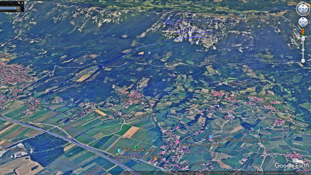 Mojca (zaradi uporabe lokalnih cest) že brzi proti Colu, ko naju Milanče zapelje na AC. Kmalu ugotoviva, da je okoli Kovka in Čavna pokrito z grdo bazo (še nekaj prej je bilo krasno sonce) in da je veter obrnil na S, SV (kot je napovedoval PP v nasprotju z dopoldanskim dejanskim stanjem, ko je ves čas rahlo pihal gor J, JZ in je to tudi botrovalo današnji izbiri…). Takoj obvestiva Mojco, ki se odloči za podaljšek proti Lijaku, kjer že ves nizek leta Kante. Ker postaja tam ne dela in so na nekaterih živih kamerah baze na grebenu (ARSOve ne delajo že nekaj dni), ne verjameva preveč v letenje naLijaku in z AC odklopiva na Uncu, saj se lahko vrževa dol tudi s Strmce, kjer je še dokaj sončno in kjer postaja (v nasprotju z napovedjo) že ves dan kaže šibek JZ.