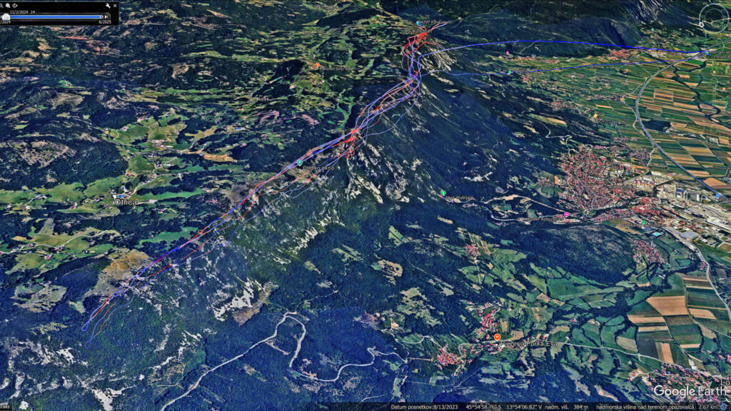 Sam pa se samo peljem nad grebenom nazaj mimo Hublja do Podrte in potem ven pred start (kjer sem spet okoli 1000). Na startu še množica novih padalcev. Obrnem in spet proti Hublju v drugo rundo.