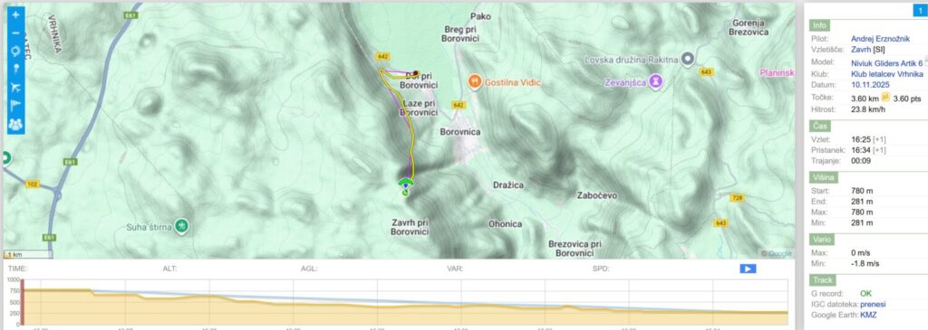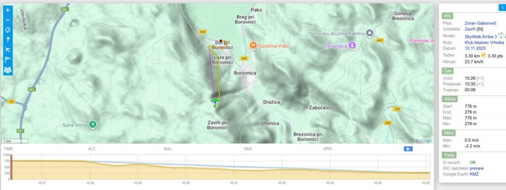 Medtem se na startu trakci rahlo usločijo gor in po neuspelem hrbtnem poskusu mi prisotni pohodnik ponovno namesti padalo, da s potegom naprej le dvignem padalo dovolj, da ga začutim nad sabo… in stopim čez rob… in se po vedno bolj hladnem putru (inverzija) odpeljem na pristanek.
