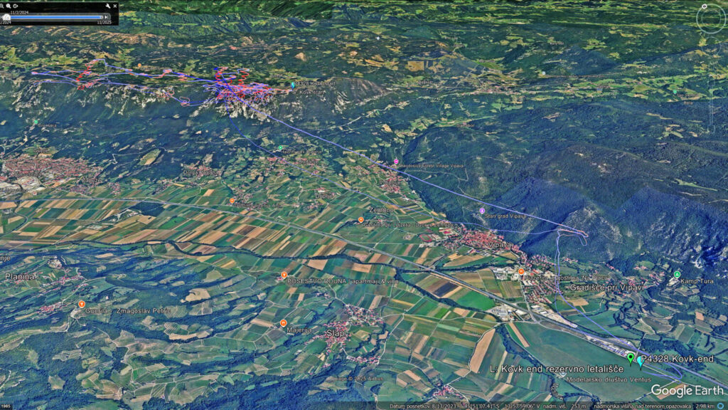 Vidim Erza (ki se je očitno rešil), kako pelje čez proti Nanosu in se usmerim za njim. Pa samo curim tudi z -2, tako da se naslonim na pobočje pod Plazom s 380. Erzo pa naprej mimo Table. Malo se matram, potem se odpeljem ven čez AC na svoj standardni travnik.