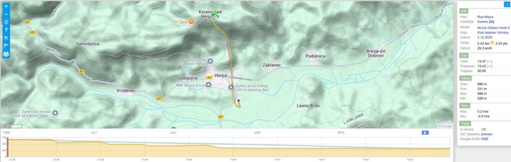 Danes podoben dan kot včeraj, z malo generalnega vetra J, JZ smeri; sondaža slaba, zjutraj dokaj sončno brez megle, čez dan postopno pokrivanje. Navijam za Gorenjsko (dokler je še sonce), pa nimam kompanjona. Delux pa navija za Koreno (ker mu je pač najbliže) in zato skličem(o) zbor za 13.15. Potrdi še Mojca in v Elektrik se zbašemo mi trije + Meta za zemeljsko podporo.