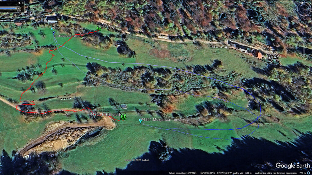 Samo zbašem robo rifuzo v LCja in se zapeljem naprej do vasi in na stranski odcep. Še malo višje v pobočje, kjer ravno pripravljajo cestico/infrastrukturo za nekaj novogradenj. Zdaj pustim rezervo in odvečno robo v LCju in kar z nabranim padalom (in brez palic) po travnatem pobočju cikcak gor no vrha, na start kjer je Erzo odletel pred 5 leti.