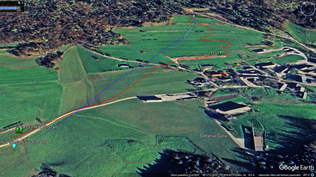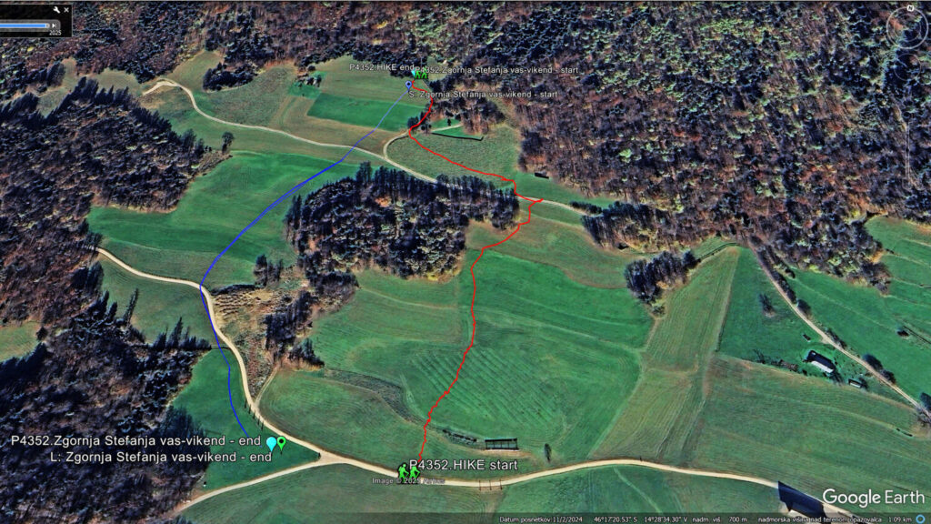 Z LCjem kar naprej po gozdni cesti proti Štefanji gori. Nekaj časa vozim skozi gozd, potem se odprejo travniki planote. Malo se razgledam in na telefonu najdem približno lokacijo, kjer je pri vikendu odletel Erzo pred skoraj 2 leti.