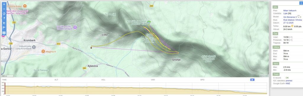 Na pristanku se naložita še Mojca in Meta. Na startu kar nekaj ljudi (še cca 10, za razliko od prejšnjič, ko smo bili sami). Vetra nič ali rahlo s strani, pa občasno tudi po startu gor. Čudovito sončno in prijetno toplo. Seveda odleti prvi Erzo (kar dokumentirata Bergant in Meta).