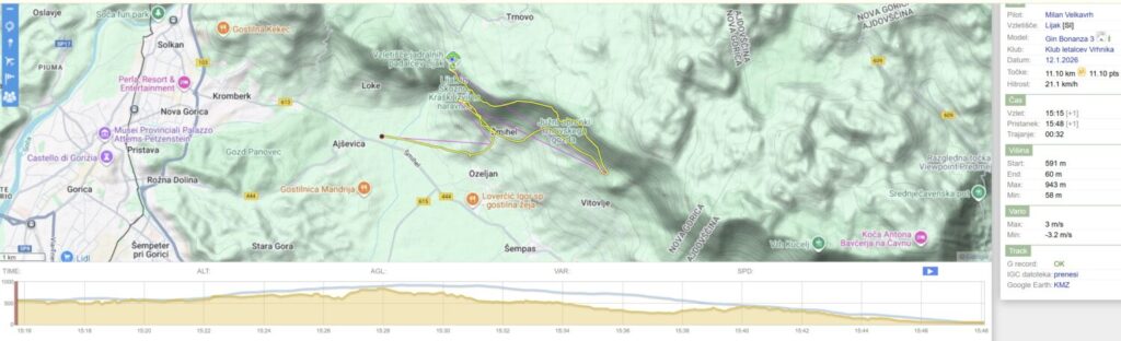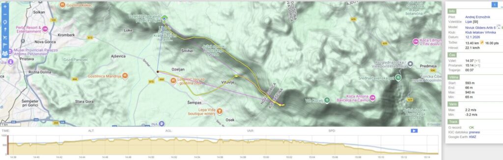 Andrej Erznožnik : Pa kako si tolk pozen startal (za nami), če si šel že 1145 z Vrhnike, mi pa šele 1320?? [12.1.2026 16:49] Milan Velkavrh : Zato tako zgodaj iz Vrhnike, ker sem pred letenjem šel še na en poslovni dogodek v Kromberk. [12.1.2026 17:11] Zoran Gaborovič : 🤣A ni bil poslovni sestanek pod Kromberkom 🤣 … na modelarski🤣 [12.1.2026 18:05]