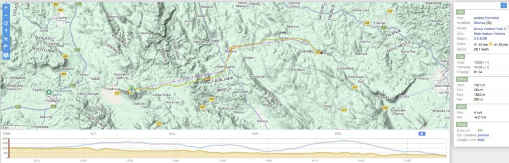 Komentar leta: Osmi let/ čez Bloke letos. Četrti let/čez Krko letos. Ni res, da je bil trening. Tekma – višjega razreda kot DP. [3.3.2026 15:48] Sky Rider : Bravo in cestitam za zmago. [3.3.2026 14:44]