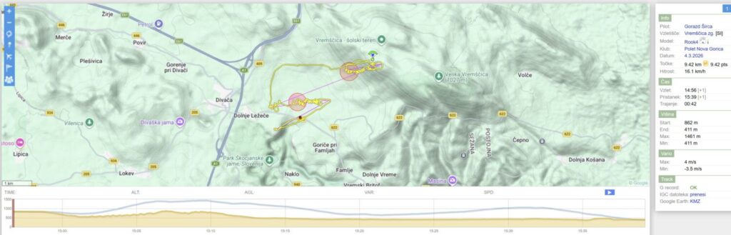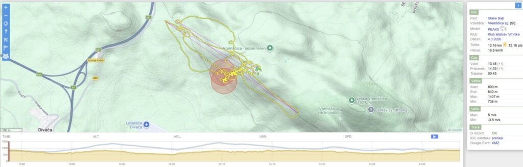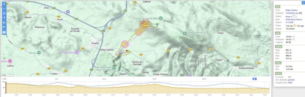 Počasi smo se vsi (zadnje dni prisotni) naveličali Slivnice. Ker pa je danes podoben dan kot včeraj (le cca 1 m več JZ kot včeraj, gradient super, pa še sonce…), je vseeno zbor na Vrhniki ob 12.15 v osnovi za Slivnico (ali naprej).