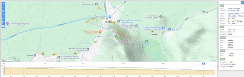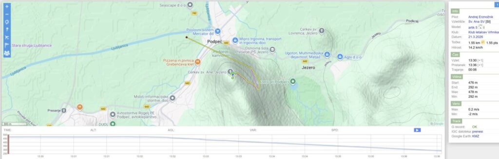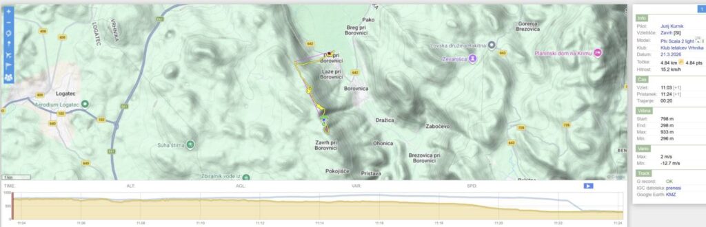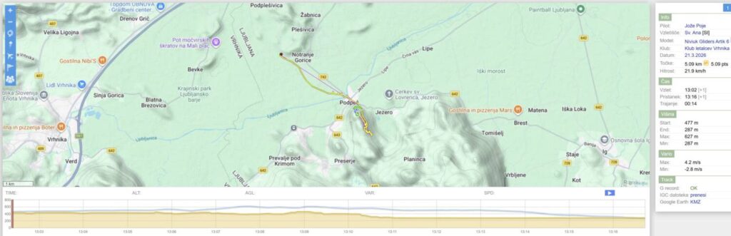 Med čakanjem opazujem (od zadnjič lepo postavljeno) klobaso, ki kaže močne sunke (klobasa vodoravno) not v dolino, pa malo kasneje za 180 st ven proti Vrhniki, pa od Planince proti Dolu, pa od mene ven na Planinco !! Hkrati mi vrne prej neodgovorjeni klic Ana in pove, da ji že nekaj časa let ni bil tako neprijetno razrukan, kot danes (Jurij je mnenja, da nad grebenom ni bilo tako hudo 😜…) in da gresta še na oglede na Sv.Ano. Hkrati Erzo objavi, da gresta s Pojetom raje na Sv.Ano, saj je zgoraj na Zavrhu že čez 10.