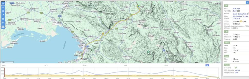 Zagi Zagi : Bravo👌👍 [18.4.2026 16:29] Zagi Zagi : Kopalna sezona odprta😉 [18.4.2026 16:29] Samo Ferbec : Cum Dominus alas suas expandit, nulli sunt fines.. [18.4.2026 16:43] Berto Prodan : Zakaj nisi potegnu do Benetk? [18.4.2026 16:54] Aleš Pirš : Veternica bo vzela vso termiko sem si mislil in zopet sem narobe mislil. Lepa [18.4.2026 16:57] Jože Poje : Do Benetk pa nimam časa…. [18.4.2026 16:58]