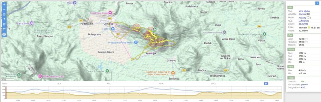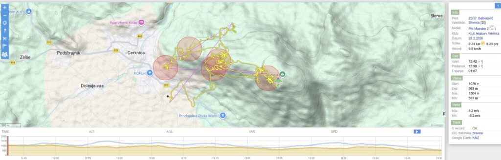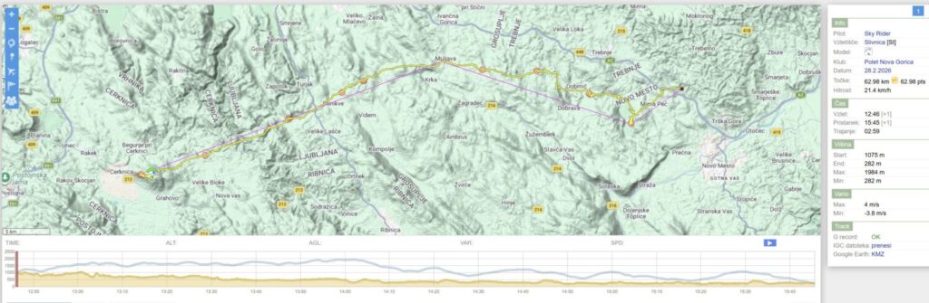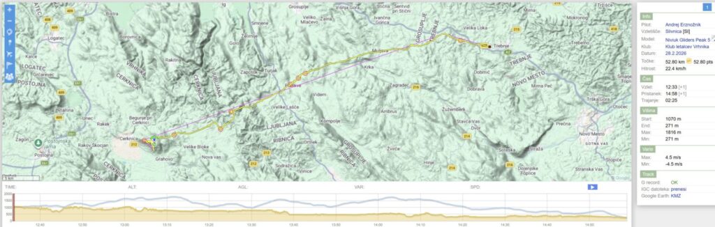 Nikolina se je namreč mednašim letenjem že zelo kmalu pravočasno usmerila za preletaši, ki so izkoristili nenapovedane pogoje in potegnili proti V, dokler je šlo. In šlo je kar daleč za konec februarja 😊👍.