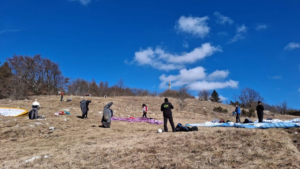 Na startu je več vetra kot včeraj, bolj konstantno močan, usmerjen bolj od JZ,Z. Po ne vem koliko časa postavim kar spodaj na platoju. Počasi se pripravljajo tudi ostali. Pride še Štusejev Luka.