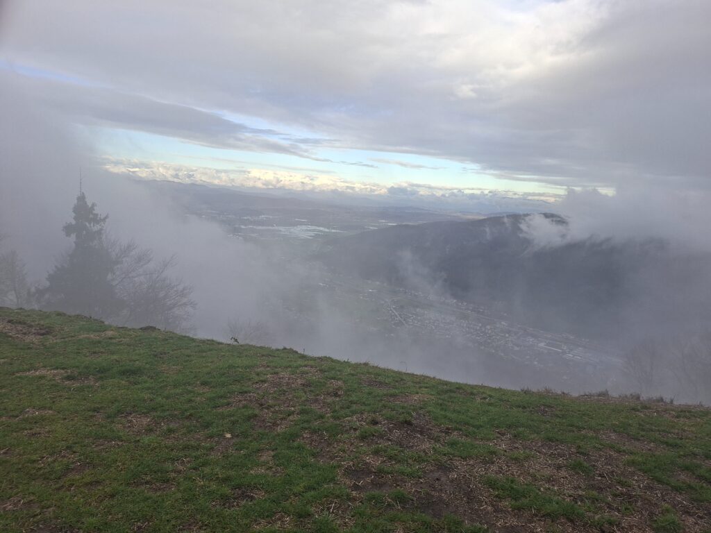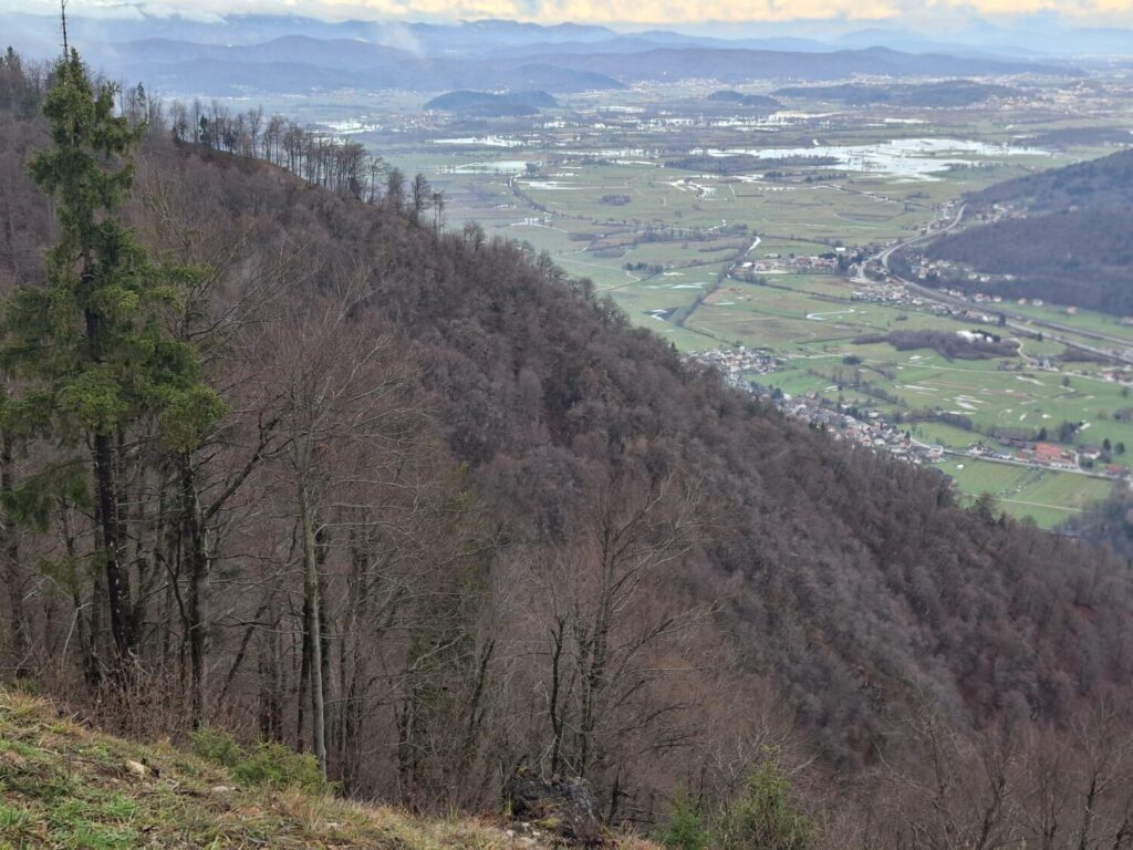 Pred Čavnom naberem, dokler gre (nekaj čez 1500 in pridem lepo nad inverzijo, ki iz teh višav pobeli vse nižine proti Italiji, Vipavski in Krasu do morja) in se visok odpeljem za/nad grebenom čez Kucelj in Modrasovec. Kar bolj zunaj odpeljem čez na Kovk, kamor priklopim z lepo višino nad grebenom. Pošteno me že zebe in čeprav se ni treba preveč matrati, da ohranjaš ali pridobiš višino, se iznad Podrte odpeljem s 1200 kar direkt ven nad dolino in na moj standardni pristanek na rezervno letališče (kjer je še sonček).