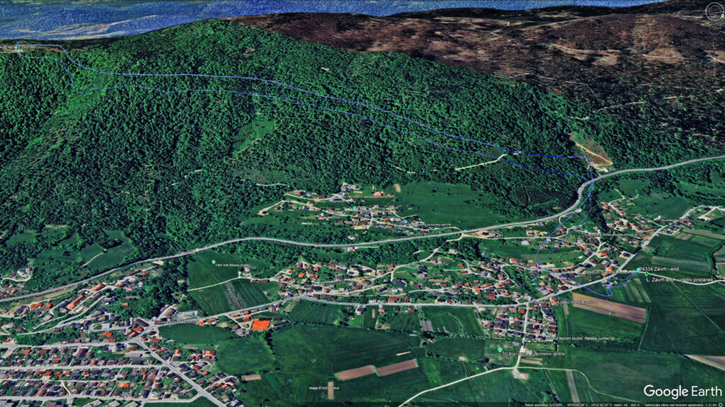 Sprva je res treba iskati in paziti, potem se navadimo in vrtimo in drajsamo in… se počasi približuje moja polna 1h. Prvi potegne čez dolino na Dvorski hrib (nad Strmol) Tomaž, za njim Erzo, pa Boris, jaz in še Milanče. Še tam malo vrtimo in jadramo in ko imam zadosti, se zapeljem nazaj na Grajca.