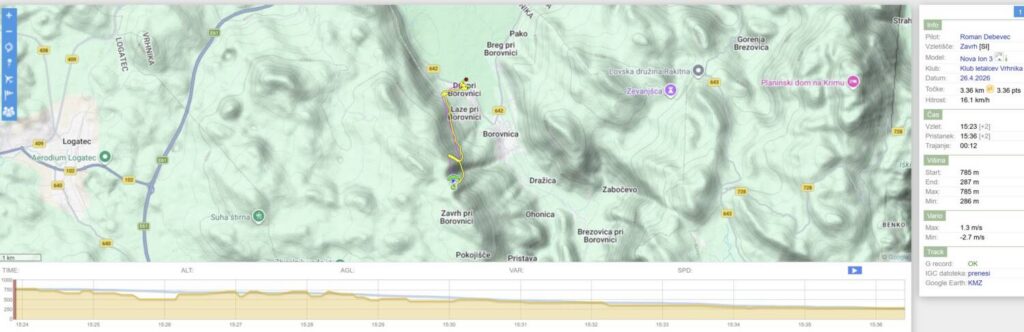 Roman Debevec : Tiha večerna Strmca… (Tiha pa zato, ker mi je po desetih minutah vario crknu…🙉) Drgač pa kr lepa družba… lp Vsem! [24.4.2026 21:49]